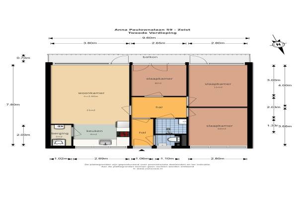 Het adres van deze woning uit 1966 is Anna Paulownalaan 59 te Zeist. Het pand heeft een oppervlakte van 75m² en heeft 4 kamers kamers waarvan 3 slaapkamers. De geschatte waarde van deze woning is € 145.000.