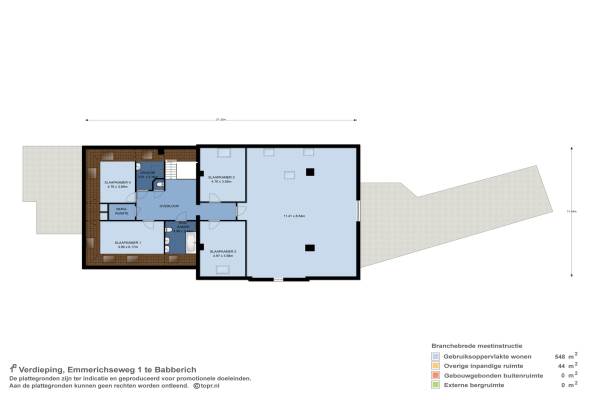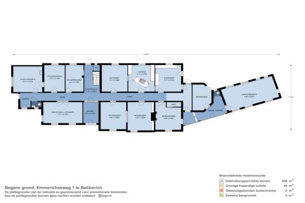 Het adres van deze woning uit 1850 is Emmerichseweg 1 te Babberich. Het pand heeft een oppervlakte van 530m² en een perceeloppervlakte van 2770m² en heeft 13 kamers kamers waarvan 4 slaapkamers. De geschatte waarde van deze woning is € 795.000.
