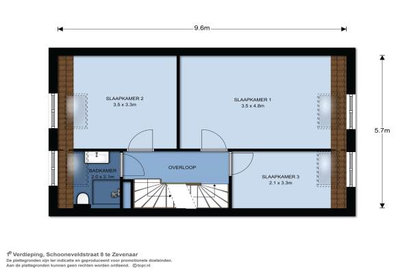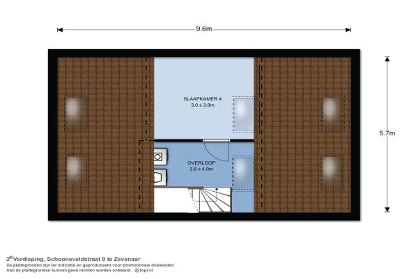 Het adres van deze woning uit 2009 is Schooneveldstraat 8 te Zevenaar. Het pand heeft een oppervlakte van 122m² en een perceeloppervlakte van 221m² en heeft 5 kamers kamers waarvan 4 slaapkamers. De geschatte waarde van deze woning is € 250.000.