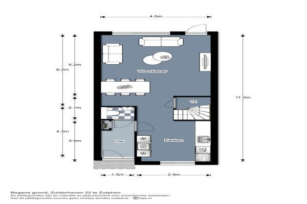 Het adres van deze woning uit 2009 is Zuiderhaven 22 te Zutphen. Het pand heeft een oppervlakte van 92m² en een perceeloppervlakte van 89m² en heeft 4 kamers kamers waarvan 3 slaapkamers. De geschatte waarde van deze woning is € 216.850.