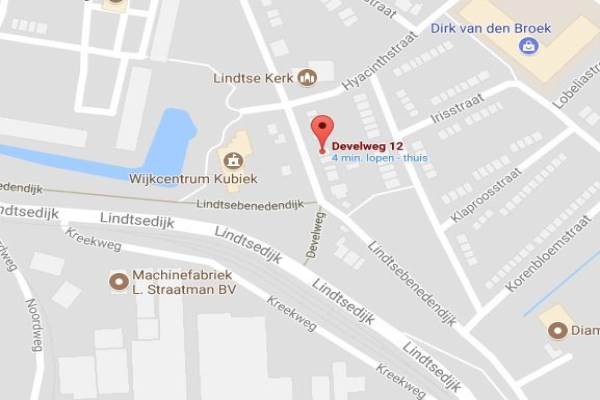 Het adres van deze woning uit 1922 is Develweg 12 te Zwijndrecht. Het pand heeft een oppervlakte van 120m² en een perceeloppervlakte van 307m² en heeft 5 kamers kamers waarvan 4 slaapkamers. De geschatte waarde van deze woning is € 297.000.
